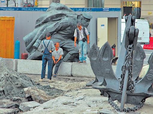 Вчера днем журналисты "КП" стали свидетелями того, как от памятника морякам Днепровской флотилии отпилили одну из скульптур. Со слов строителей, монумент демонтируют для расширения дороги, а вот куда его перенесут - решат в среду на градостроительном совете. Пока есть три варианта: на Рыбальский остров, на набережную возле выхода со станции метро "Днепр" и еще дальше по набережной - напротив Музея ВОВ.