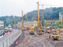 Сама площадь перекопана, но основные работы ведутся пока напротив Речного вокзала, возле здания "Киевпастранса". Там строители бурят сваи для эстакады, по которой автомобили заедут с Набережного шоссе на Владимирский спуск. У ресторана "Макдоналдс" отобрали парковку, но само здание обещают не трогать.