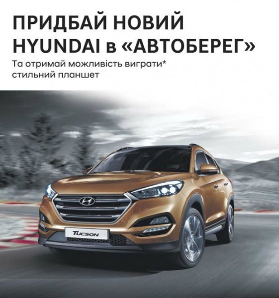 З 01 по 30 листопада 2017 року в офіційному дилерському центрі Hyundai компанії «Автоберег» пройде акція «Samsung Galaxy Tab в подарунок до нового Hyundai», в рамках якої серед всіх покупців автомобілів Hyundai буде розіграний планшет. Кожен зареєстрований учасник отримає гарантований подарунок!.