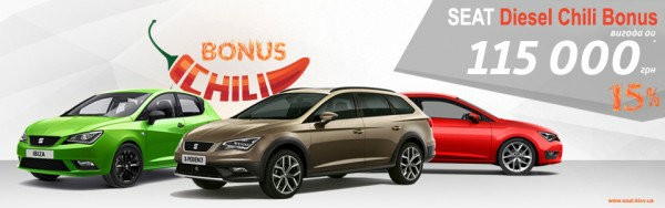 Текущие предложения «SEAT Chili Bonus» и «SEAT Diesel Chili Bonus» действуют до конца июня 2016 года. Подробнее о SEAT см. на www.seat.kiev.ua., тел.: 044 490 10 97