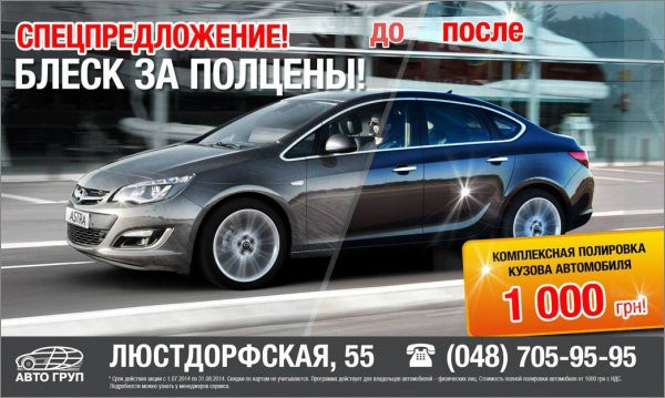 Только с 1 июля по 31 августа 2014 года в Автоцентре АВТО ГРУП действует специальная цена на полировку Вашего автомобиля.