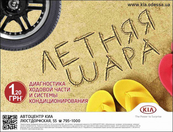 Мы поздравляем Вас с наступлением лета и именно поэтому у Вас есть замечательная возможность воспользоваться настоящей летней шарой в сервисном центре KIA!.