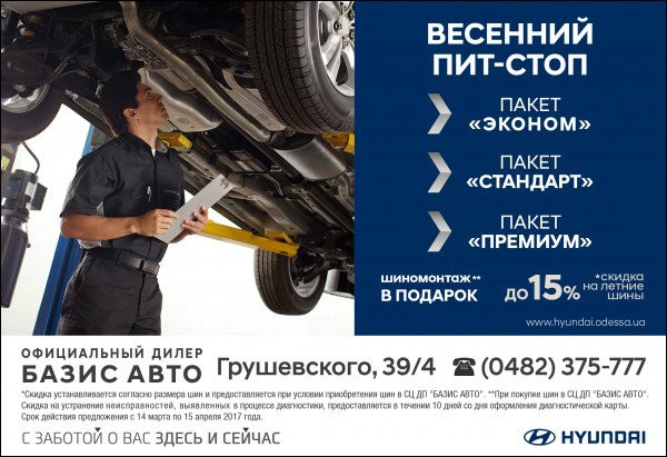 Официальный Сервисный Центр Hyundai компании БАЗИС АВТО объявляет о запуске сервисной акции — Весенний ПИТ-СТОП!.