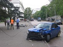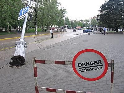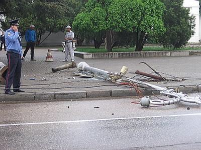 Удар был такой силы, что натянувшиеся электропровода вывернули из земли и соседний фонарный столб.