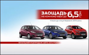 Тільки до 31 березня діє знижка 6,5 гривень на кожному євро при купівлі автомобілів Ford EcoSport, Ford Mondeo та знижка 3 гривні на кожному євро при купівлі іншої моделі Ford.