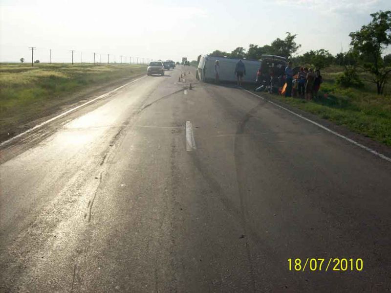 18 июля, около 17:00, на 109 км автодороги ''Херсон - Керчь'' водитель автомобиля Hyundai Tucson, по предварительным данным, превысил безопасную скорость и выехал на полосу встречного движения, где совершил столкновение с микроавтобусами Volkswagen LT-35 и Volkswagen Transporter, а также с легковым автомобилем Nissan Maxima.