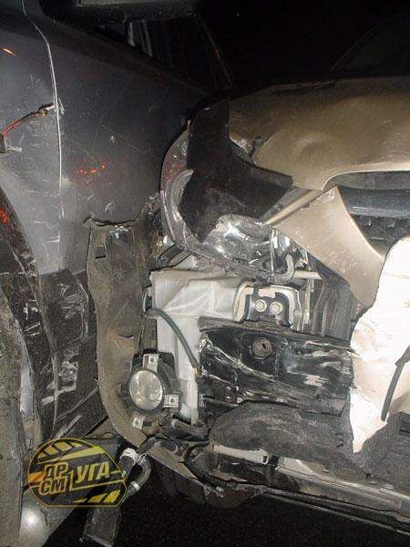 От сильного удара у «японца» полностью разбита передняя часть: радиаторная решетка, бампер, крышка капота, крылья. Другой внедорожник отделался повреждениями передней части с левой стороны. Оба транспортных средства застрахованы.