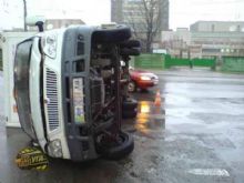 На перекрестке улиц Мельникова и Семьи Хохловых Mazda 323 врезалась в ГАЗель. От удара грузовичок перевалился на бок!, сообщает .
