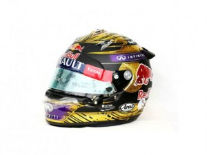 Уникальный шлем отличается сверкающей отделкой и автографом на макушке. Он был изготовлен специально к Гран-при Германии 2013 года. Этот этап является домашним для немецкого гонщика и был выигран в этом году Себастьяном впервые. О покупателе экспоната ничего не известно. Некоторые средства массовой информации утверждают, что им стал британец.