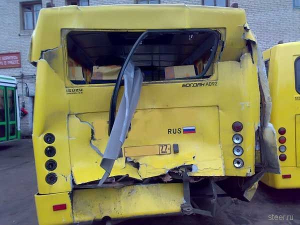 Ни один человек не погиб! 4 человека получили легкие повреждения. Автобус был полный, со всеми пассажирами, за исключением одного места, которое было проткнуто этой железкой.