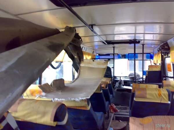 Пассажир с этого места вышел с автобуса буквально за две минуты до аварии...Страшно представить что бы могло там быть, если б эта железка пошла не вверх, под крышу, а прямо...