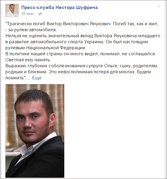 По информации российского источника, погибший все ж таки сын Януковича - Виктор.