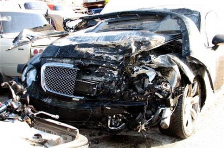 Удар автомобиля был такой силы, что мотоцикл разорвало на куски. Bentley продолжил неуправляемое движение и столкнулся еще с двумя автомобилями.
