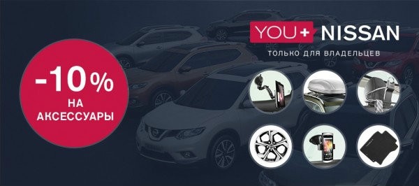 Скидка 10% от розничной цены действует на доступные оригинальные аксессуары Nissan. Воспользоваться скидкой можно предъявив сертификат (в распечатанном виде) с портала You+Nissan.