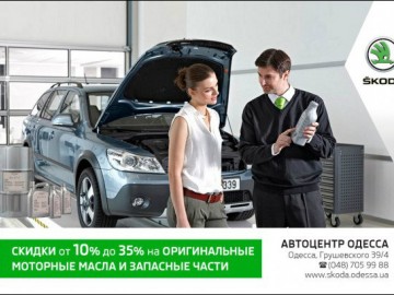 SKODA заботится о своих клиентах, поэтому с 1 марта по 31 мая 2017 действует акционное предложение на приобретение оригинального моторного масла и оригинальных запасных частей для автомобилей модельного ряда SKODA. В течение указанного периода оригинальные моторные масла и запасные части можно приобрести с эксклюзивной скидкой от 10% до 35% *.