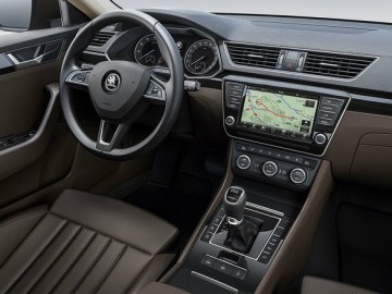 Автомобиль получил мультимедийную систему с большим экраном, который теперь умеет отображать трехмерные картинки. Как видно по фотографии, Superb’2016 может похвастаться более современным рулем и полностью переделанной приборной панелью.