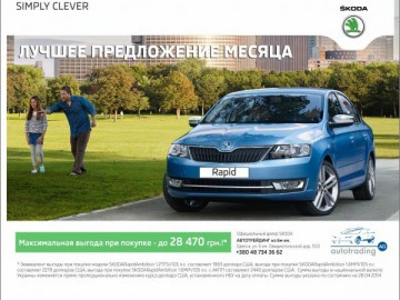 Популярный лифтбэк SKODA - Rapid, уже успевший завоевать симпатии украинских автолюбителей можно приобрести по самой выгодной цене! Максимальная выгода при покупке составляет до 28 470 грн.!* Уникальное предложение действует только до 31 мая 2014 г.