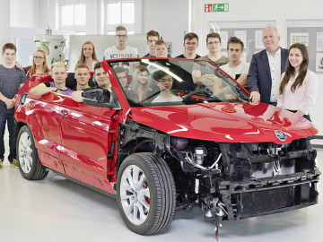 Компания Skoda некоторые технические особенности экспериментальной кабриолет-версии кроссовера Karoq, созданной своими студентами. В проекте приняли участие 23 учащихся школы «Шкоды» в чешском городе Млада-Болеслав.