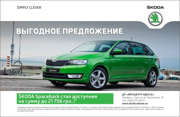 Ощущение свободы, динамика и пространство, надежность на которую всегда можно положиться – теперь вы можете себе это позволить! В октябре 2014 года SKODA Spaceback становится доступнее – до 21 756 грн.!*.