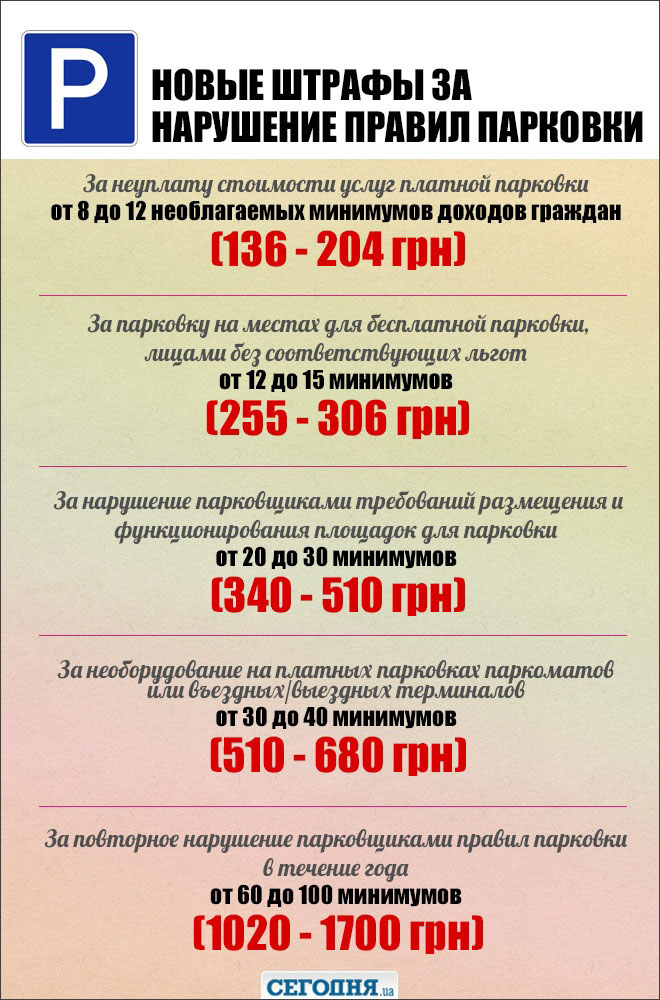 Согласно закону, сумма штрафов будет варьироваться от 136 до 1700 гривен.
