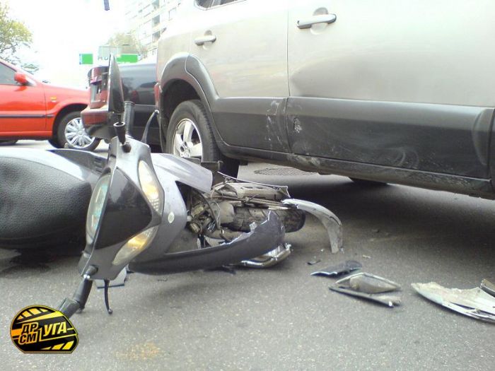 В аварии пострадал только скутер и автомобиль. Люди остались целы. Скутерист, в частности, не пострадал благодаря своей экипировке. Автомобиль же получил незначительные повреждения в виде мелких царапин. Скутер был доставлен в гараж владельца с уничтоженным передним пластиком и поврежденной передней подвеской.