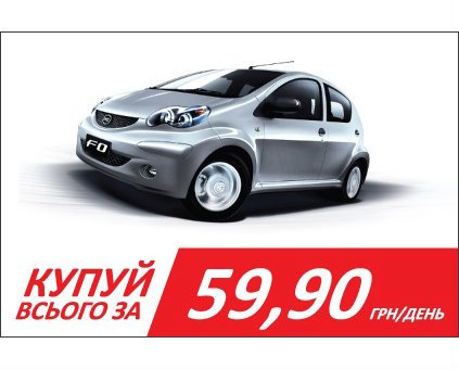 С ноября на весь модельный ряд BYD действует специальное кредитное предложение, которое позволит стать автовладельцем каждому желающему. Для этого нужно иметь лишь от 10% полной стоимости авто, необходимые идентификационные документы, и банк предложит Вам выгодные условия кредитования сроком до 84 месяцев. Таким образом, стать владельцем современного городского автомобиля BYD F0 можно имея всего 10 799 грн для внесения залога (плюс единоразовая комиссия 1263,48 грн). При максимальном сроке кредитования ежемесячный платёж составит 1794 грн, или, в среднем – всего 59,90 грн/день! При этом вы получаете новый и экономичный автомобиль, наделённый инновационной функциональностью, современными системами безопасности и ярким внешним видом. BYD F0 – лучший выбор для города, а специальное кредитное предложение делает его отличным вариантом для первого автомобиля.