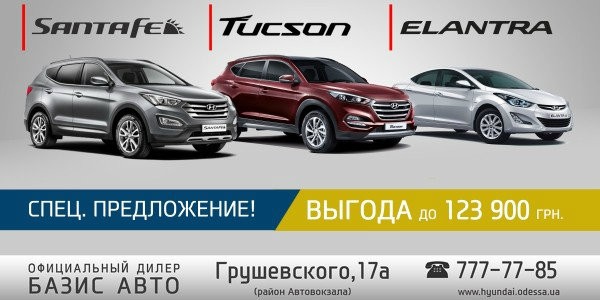 Официальный дилер автомобилей HYUNDAI в Одессе, компания ДП "БАЗИС АВТО" предлагает Вам выгоду на модельный ряд автомобилей HYUNDAI до 123 900 грн!.