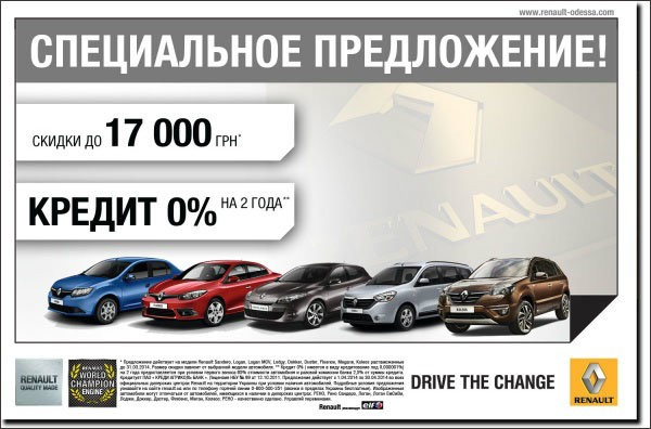 Только сейчас клиентам предоставляется возможность воспользоваться выгодными условиями и приобрести одну из популярных моделей Renault. При покупке Renault в апреле – экономия составляет до 17 000 грн!