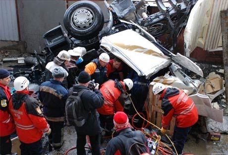 8. Восьмое место нашего рейтинга занимают аварии с участием грузовиков. Напомним, что власти Киева запретили въезд грузовиков в центр города, однако, от неприятностей это не спасло. Так вечером 19 марта на проспекте Науки напротив дома № 84 (Голосеевский район) у "КАМАЗ 54115-010" с полуприцепом отказали тормоза и тяжеловес "смел" более десятка автомобилей.