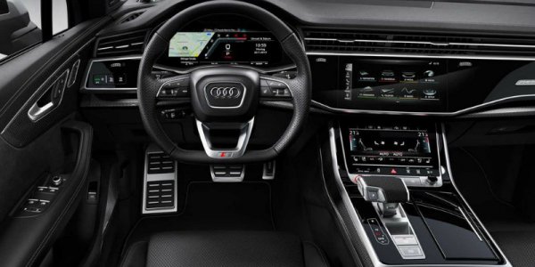Кроссовер оснащается 20-дюймовыми колесными дисками, у него тормозная система с 400-миллиметровыми дисками спереди и 370-миллиметровыми сзади. Внутри SQ7 появилась новая передняя панель i-cocpit с двумя большими сенсорными дисплеями на центральной консоли в стиле новых A7. Верхний тачскрин отвечает за работу мультимедийной системы, а при помощи нижнего можно управлять климатической установкой.