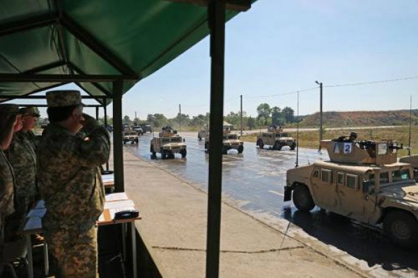 Десантники продемонстрируют бронированные HMMVW, полученные в качестве военной помощи от США.