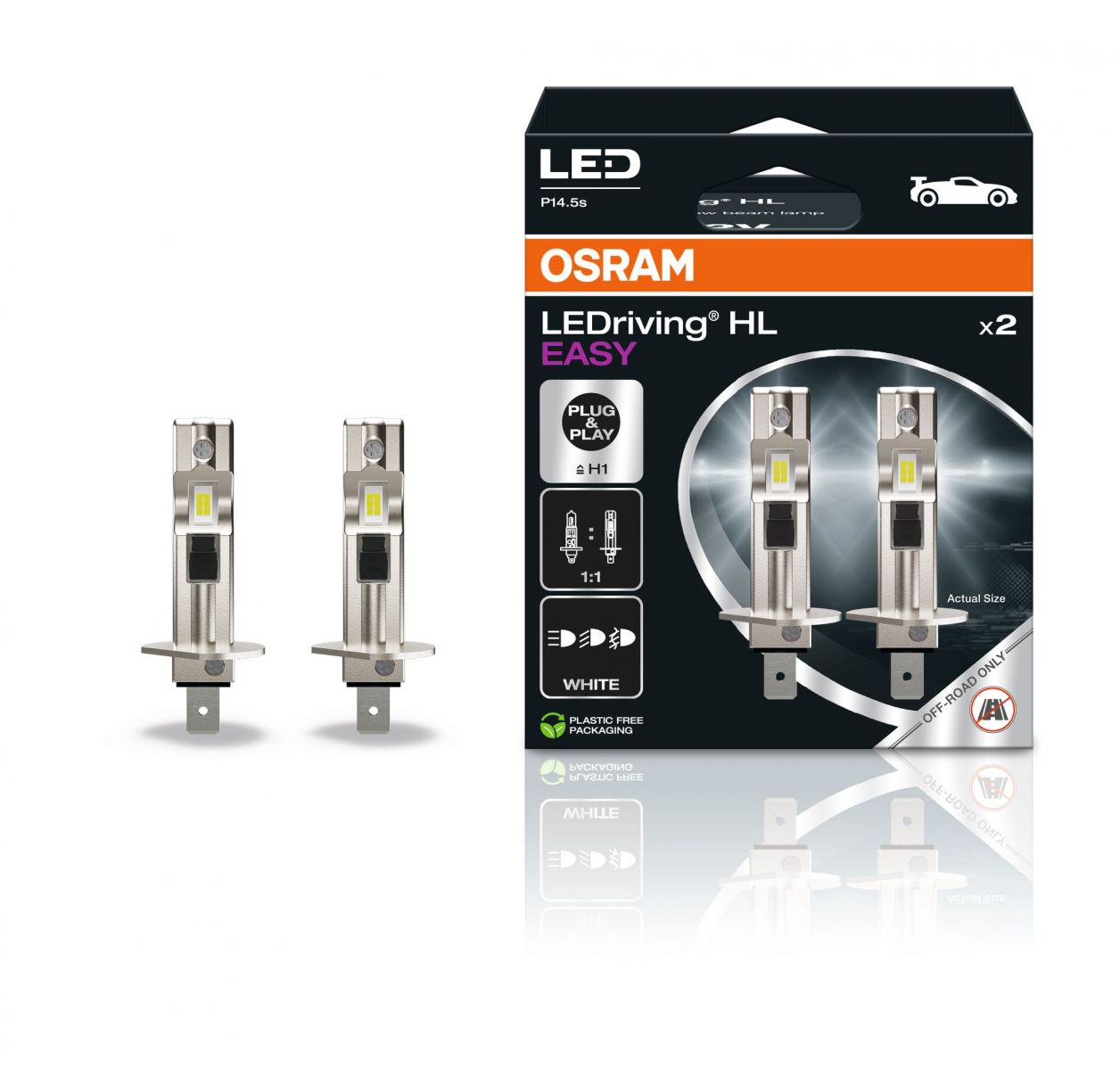 LEDriving HL Easy. Головний тренд останніх років – перехід від галогенних та ксенонових ламп до світлодіодних (LED). OSRAM не просто слідує за трендом – вона формує його. Марка пропонує широкий асортимент інноваційних LED-рішень, включаючи off-road світлодіодні лампи LEDriving HL Easy. Це LED-лампи, які можна монтувати в звичайні галогенові фари. Адже ці діодні лампи відрізняються повним повторенням геометрії галогенних ламп, з простою установкою за принципом plug&play, їм не потрібний адаптер і особлива кришка. Завдяки компактним розмірам, що відповідають традиційним лампам розжарювання, установка LEDriving HL Easy проходить швидко і легко.