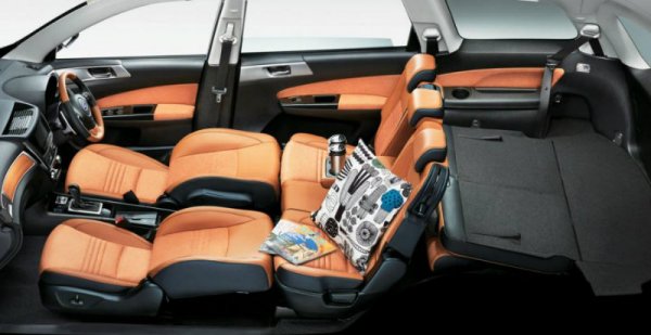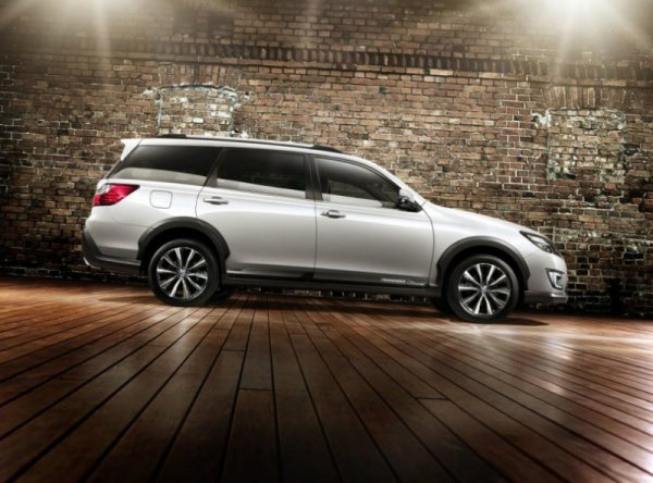 Вседорожный универсал имеет защитные пластиковые накладки на бамперах, колесных арках и порогах, а в салоне — третий ряд кресел, которые вместе со вторым рядом могут складываться, образуя практически ровную погрузочную площадку. Спинки передних сидений также можно полностью откинуть, получив большую двуспальную кровать.