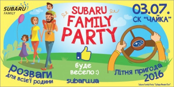 Компания «Субару Украина», официальный дистрибьютор автомобилей Subaru, приглашает всех почитателей марки и ее фанатов на спорткомплекс «Чайка» под Киевом: 3 июля 2016 года здесь в четвертый раз пройдет ежегодный семейный фестиваль Subaru Family Party.