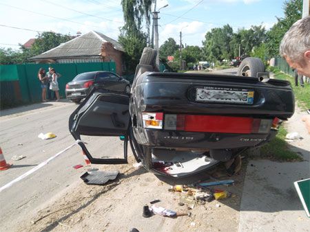 Сумы: пьяный водитель ВАЗ-2110 врезался в бордюр и перевернулся - пассажир погиб. (Фото)