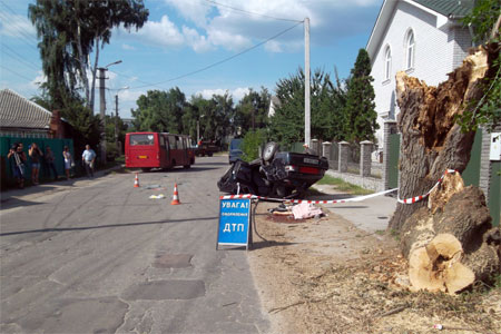 ДТП произошло 3 июля, в г. Сумы, на улице Парижской Коммуны. По словам очевидцев аварии, автомобиль ВАз-2110 ехал на большой скорости в направлении Роддома. На выходе из поворота водитель, по всей видимости, не справился с управлением автомобиля.
