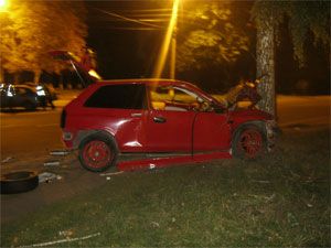 В субботу в 03:10 в Сумах, двигаясь в направлении улицы Белопольское шоссе по улице 8 Марта водитель автомобиля Mazda в районе перекрестка с улицей М. Расковой допустил выезд за пределы проезжей части.