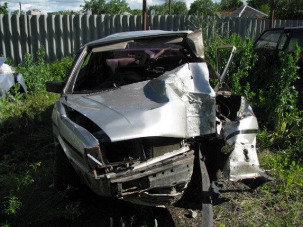 По данным свидетелей ДТП автомобиль Audi на высокой скорости внезано выехал на полосу встречного движения, а потом сьехал в кювет. Почти 50 метром автомобиль ехал в кустах, а потом влетел в дерево.