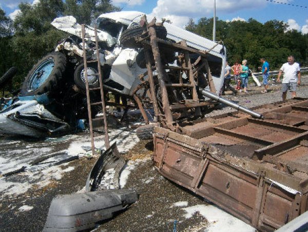 Сумская область: на трассе "Киев-Москва" Mercedes-310D въехал в прицеп трактора - водитель погиб. (Фото)