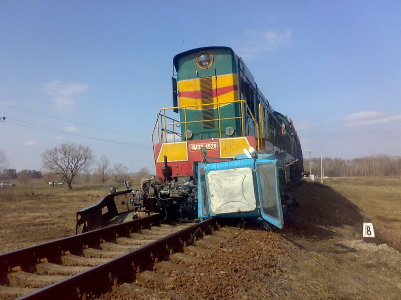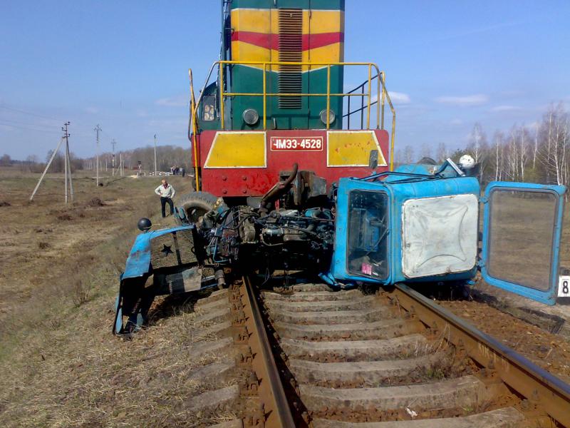 17 апреля, около 10:00, на 18 км перегона Шостка - Новгород Северский в районе села Богданка Шосткинского р-на Сумской области произошло столкновение трактора МТЗ с грузовым поездом.