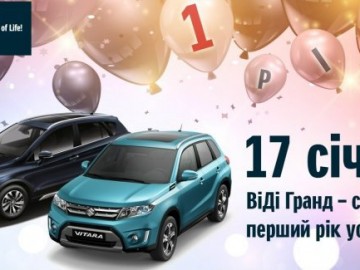 17 січня 2017р. офіційний дилер Suzuki «ВіДі Гранд» на Кільцевій, 60 відзначає свій перший день народження і з цієї нагоди робить приємні подарунки усім шанувальникам автомобілів Suzuki. .