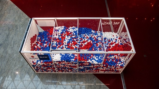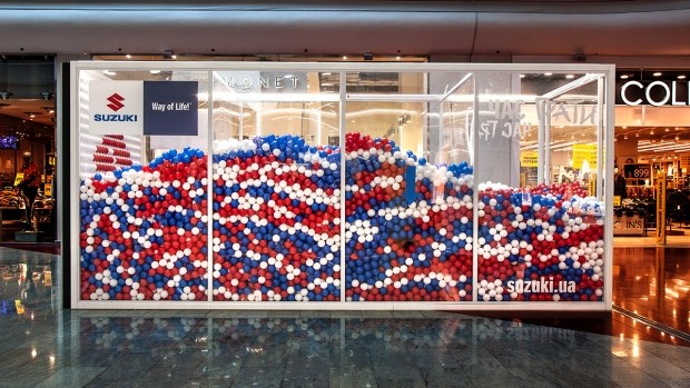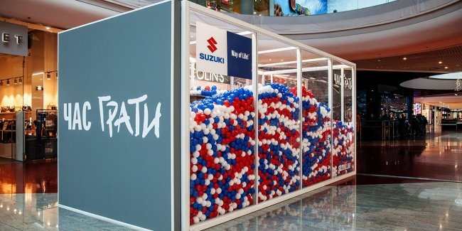 В одном из крупнейших столичных торговых центров «Океан Плаза» на выходных появилась необычная инсталляция, где под детскими шариками спрятана новая модель автомобиля японского бренда Suzuki.