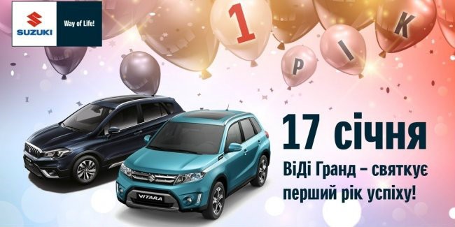 17 січня 2017р. офіційний дилер Suzuki «ВіДі Гранд» на Кільцевій, 60 відзначає свій перший день народження і з цієї нагоди робить приємні подарунки усім шанувальникам автомобілів Suzuki. .