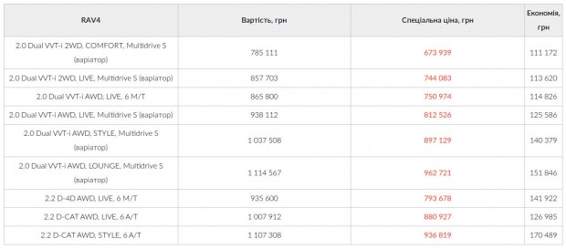 Toyota RAV4 від 673 939 грн. (з доплатою за колір металік)