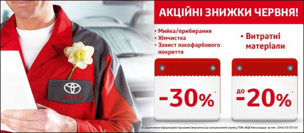 С 1 по 30 июня 2016 года все клиенты Тойота ВиДи Автострада смогут воспользоваться специальными сервисными предложениями, которые призваны дать каждому клиенту возможность получить качественный сервис по приемлемой цене.