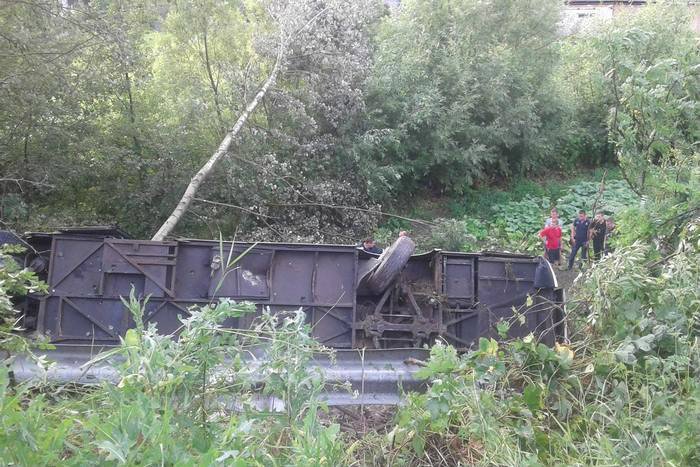 "Нас ехало 45 человек на море, сильный ливень, автобус понесло [на повороте после длинного спуска] и пару раз перевернуло в обрыв", - рассказала она.