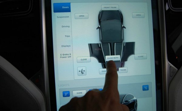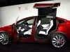 Наиболее примечательная особенность кузова автомобиля – открывающиеся вверх двери. Глава Tesla Илон Маск в ходе презентации назвал такой механизм «крылом сокола» и рассказал, что в дверь встроены специальные ультразвуковые датчики, которые постоянно следят за предметами вокруг автомобиля. Если электроника обнаружит препятствие, то дверь с электроприводом открываться автоматически не будет. Передние двери открываются классическим способом, но при этом также получили электропривод. Они распахиваются самостоятельно в случае приближения к Model X водителя.