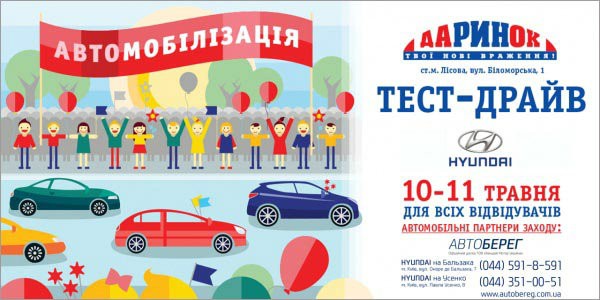 Коллектив компании «Автоберег» приглашает всех желающих посетить автомобильный праздник, который состоится 10-11 мая на территории ЦТ «Дарынок». В ходе праздника планируется презентация новых автомобилей Hyundai моделей I-10, Elantra, Santa Fe Grand.