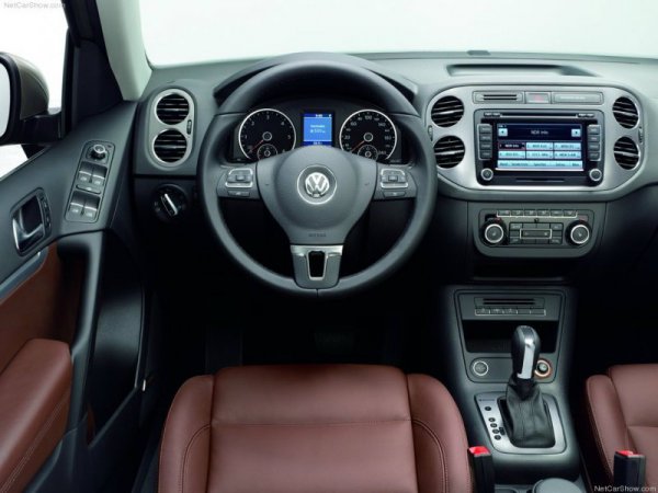 Характеристики Tiguan относительно интерьера отличаются сложным и удобным дизайном. Водителя полностью удовлетворит мультифункциональный руль и приборная панель с измененным цветом подсветки. Передняя панель выполнена из мягкого пластика, а обшивка всех ящичков и ниш выполнена из мягкого материала. Другой впечатляющей характеристикой Tiguan является регулировка задних сидений вперед-назад на 16 см. Спинку сиденья переднего пассажира можно полностью сложить, что позволяет перевозить предметы длиной 2,5 метра.