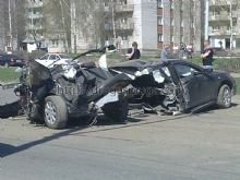 В результате столкновения Toyota Camry разорвало и неуправляемый седан, точнее, то, что от него осталось, вылетел на встречную полосу.